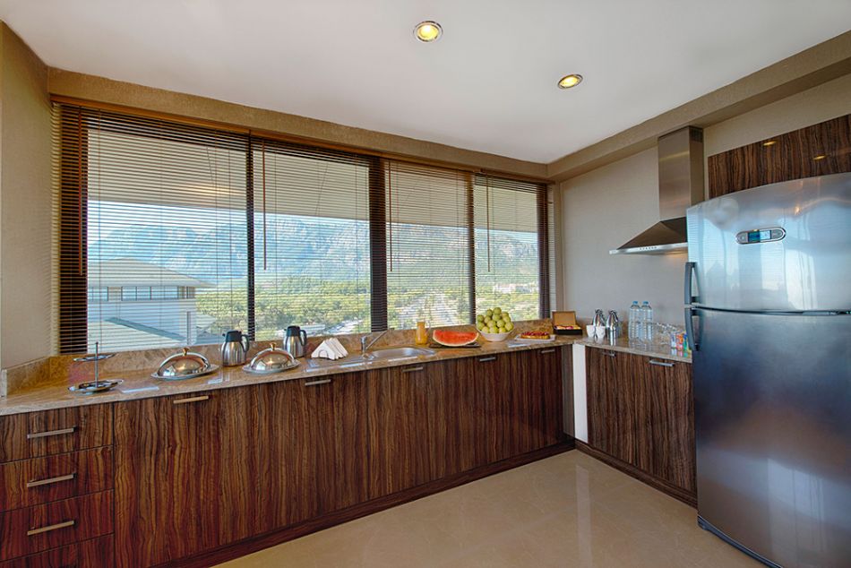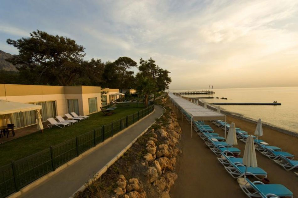 Отель расположен в 45 км от аэропорта г. Анталья, в 9 км от г. Кемер, в поселке Гюйнук, на самом берегу моря. Построен в 2009 году, общая площадь 140 000 м2.