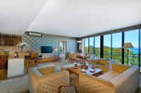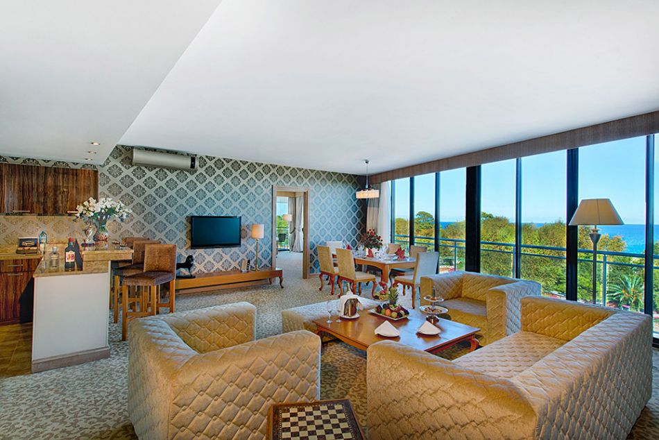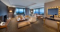 King Suite. Количество 1. Площадь 260 м2: гостиная, гардеробная, мягкий уголок , кухонный уголок (холодильник, вытяжка, микроволновая печь), : 3 спальни (с межкомнатными дверями), 3 ванные, макс. 6 чел.