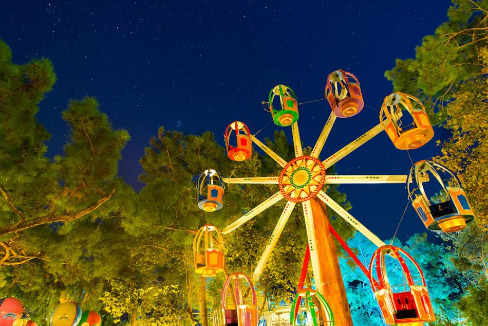 Для маленьких гостей: парк развлечений ( горки, качели и т.д.); комната для отдыха и сна (3 кровати); игровая комната (0-3 лет); игровая комната (4-7 лет); мини кинотеатр; батут; электро мобили (9 штук); спорт центр (баскетбол, футбол, теннис); лунапарк 17:00 – 20:30;