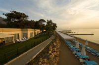 Галечный с песком пляж (700 м), 2 пирса, пляжный бар-ресторан, зонтики, шезлонги, матрасы.