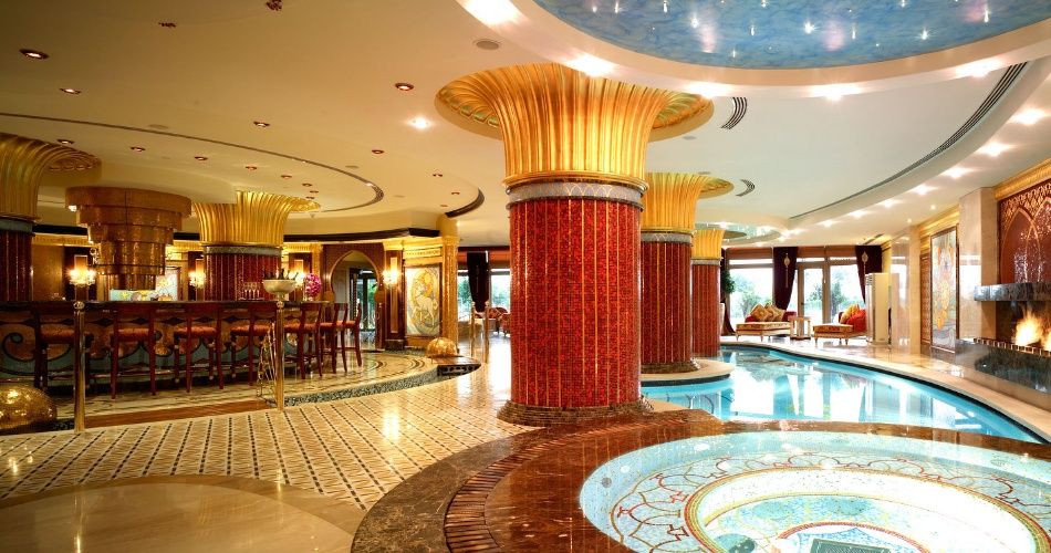 Anatolian Presidential Suite.Количество 1. Площадь 240 м2: двухкомнатный номер, коридор с туалетом, просторная гостиная c мягкой мебелью, большим обеденным столом, барной стойкой и бильярдным столом на 8 челове, спальня (1 king size bed), место для отдыха, ванная комната с джакузи и туалетом, сауна, турецкая баня, туалет и биде, большая терраса с джакузи, макс. 3+1 чел.