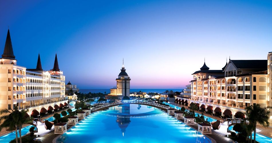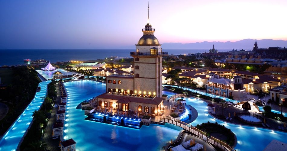 Расположен в 15 км от аэропорта, в 25 км от центра г. Анталья, на берегу моря. Отель построен в 2009 году, общая площадь 180 000 м2. Состоит из одного 8-этажного, двух 6-этажных основных зданий и 30 Garden Suite.