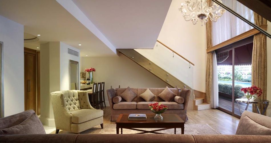Garden Suite.Количество 30. Площадь 170 м2: трехкомнатный номер, 2 отдельных входа с двумя небольшими прихожими, в одной из прихожих имеется туалет, гостиная с мягкой мебелью, обеденным столом и телевизором , 2 спальни (1 kingsizebed/ 2 twinbeds). В первой спальне имеется место для отдыха (большой пуф), телевизор, гардероб, туалетный столик и ванная комната (ванна с джакузи, турецкая баня с душем, туалет). Во второй спальне - место для отдыха, телевизор, туалетный столик, гардеробная комната, ванная комната (ванна, душевая кабина, туалет и биде), балкон (в номерах, расположенных на первом этаже имеется выход с балкона в сад к бассейну), макс. 5+1 чел.
