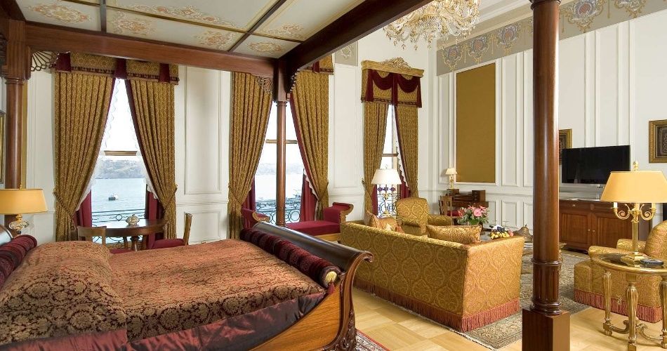 Sultan suite (376 кв. м): гостиная с обеденной зоной (стол на 12 персон) и мини-кухней, 2 спальни (одна – с кроватью «king-size»), 2 ванные комнаты (одна – с хамамом, парной, ванной и душевой кабиной «тропический дождь», вторая – с ванной). Дополнительно: 2 декоративных камина, стереосистема с CD- и DVD-плеером Bang&Olufsen, Play Station 3 (по запросу), телевизор в ванной комнате, кофемашина Espresso. Вид на Босфор. Расположен в здании Palace. Гостей данного номера обслуживает персональный камердинер.