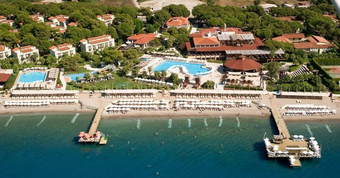 Расположен в 36 км от аэропорта г. Анталья, в 16 км от г. Кемер, в поселке Бельдиби, на самом берегу моря. Отель построен в 2014 году, общая площадь отеля 152 000 м2. Состоит из двух 3-этажных главных зданий (блок А и блок В), двадцати трех 2-этажных бунгало, семи 2-этажных и ста пятнадцати одноэтажных вилл.