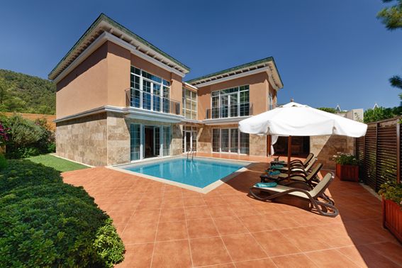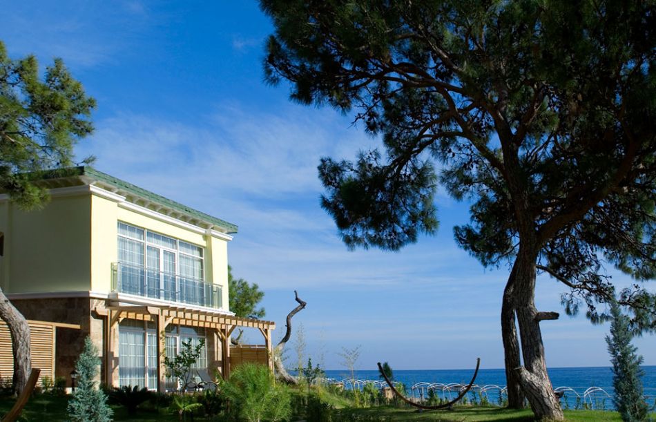 5 двухэтажных villa Deluxe (c индивидуальным бассейном, с подогревом, с террасой; на 1 этаже: американская кухня-столовая и гостиная с мягкой мебелью, ТВ, спальня с дверью, ванная с душем; на 2 этаже: 2 спальни с дверью, 2 ванные - одна из них с душем, другая с душем и ванной; пол – ковровое покрытие и мрамор, макс. 6 чел., 230 м2, VIP-сервис);