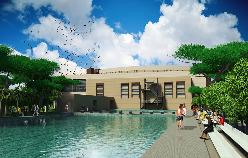Бассейн для водного поло и синхронного плавания. Открытый многофункциональный бассейн для проведения официальных игр по водному поло и соревнований по синхронному плаванию.